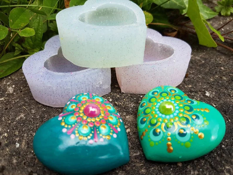 Aus der Silikonform entsteht ein Herz mit ca. 3 x 3 cm Durchmesser und ca. 1.3 cm Höhe