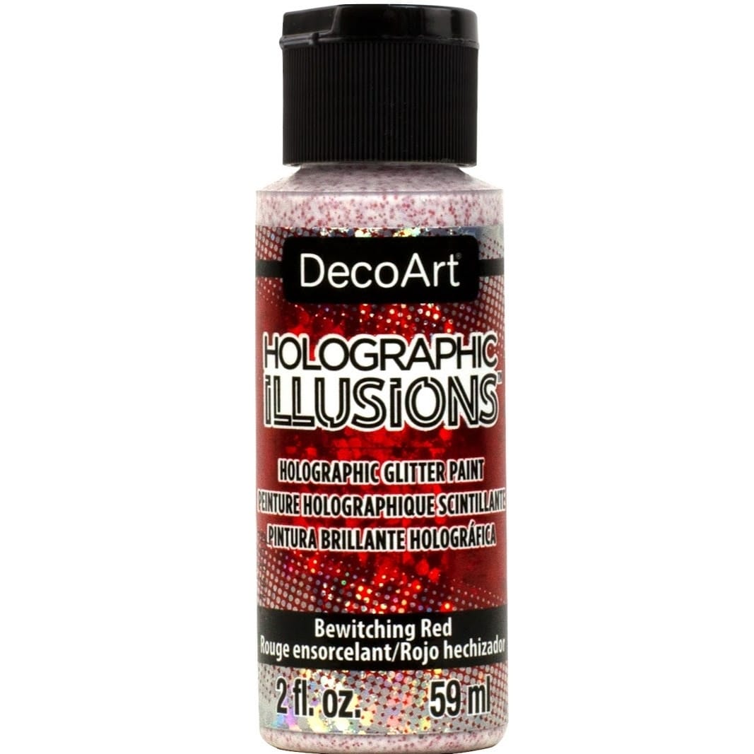 Dies ist keine gewöhnliche Glitterfarbe. DecoArt Holographic Illusions verleiht Projekten die Magie einer echten holografischen Glitzerfarbe mit einem lichtbrechenden Regenbogen aus kräftigen Farben. Diese holografischen Glitterflocken sorgen für ein prismisches Funkeln und Glänzen. Die Farbe trocknet klar ab.
