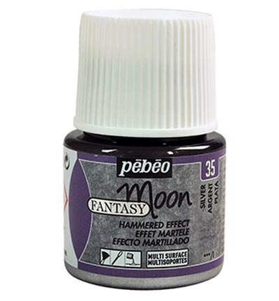 pébéo Fantasy Moon are opaque mother-of-pearl paints with a hammered effect. The hammered, marble-like effect appears immediately after application.