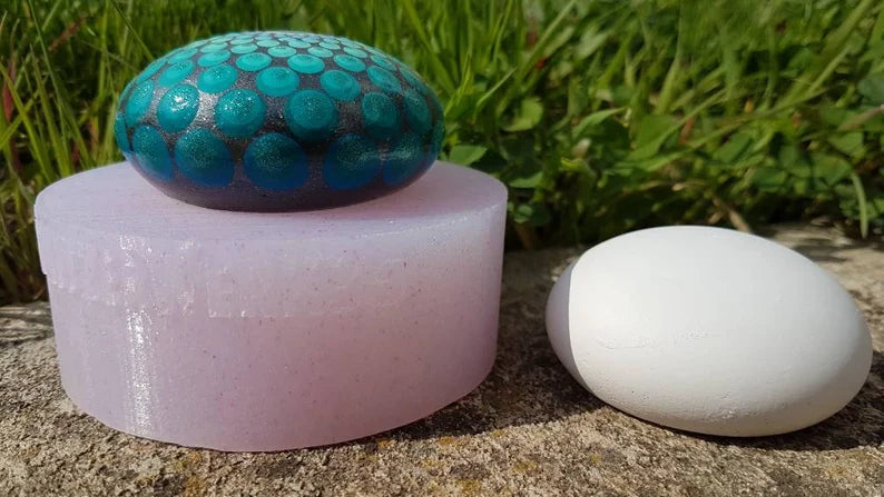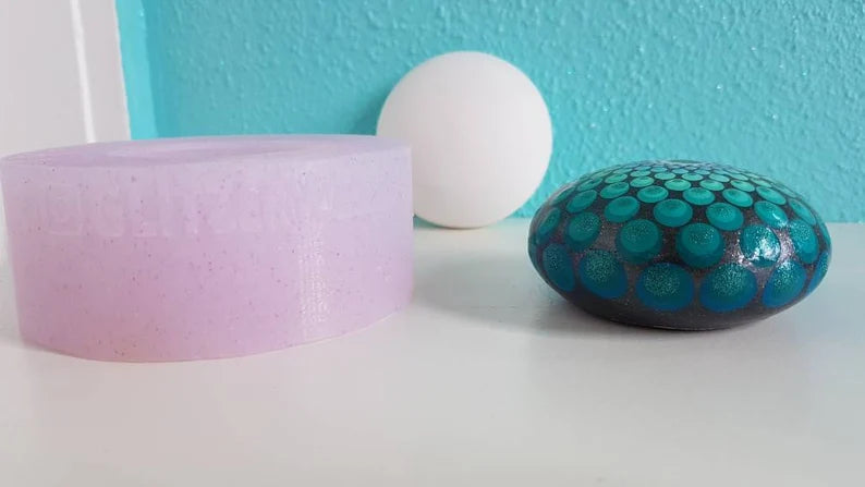 Aus der Silikonform entsteht ein Stein mit ca. 6.8 cm Durchmesser und ca. 3.2 cm Höhe
