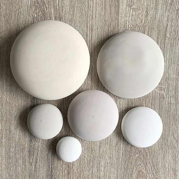 Mit dieser Silikonform kannst Du flache, runde Steine aus Gips oder Beton zum Bemalen herstellen. Der Stein hat im Zentrum eine Markierung.