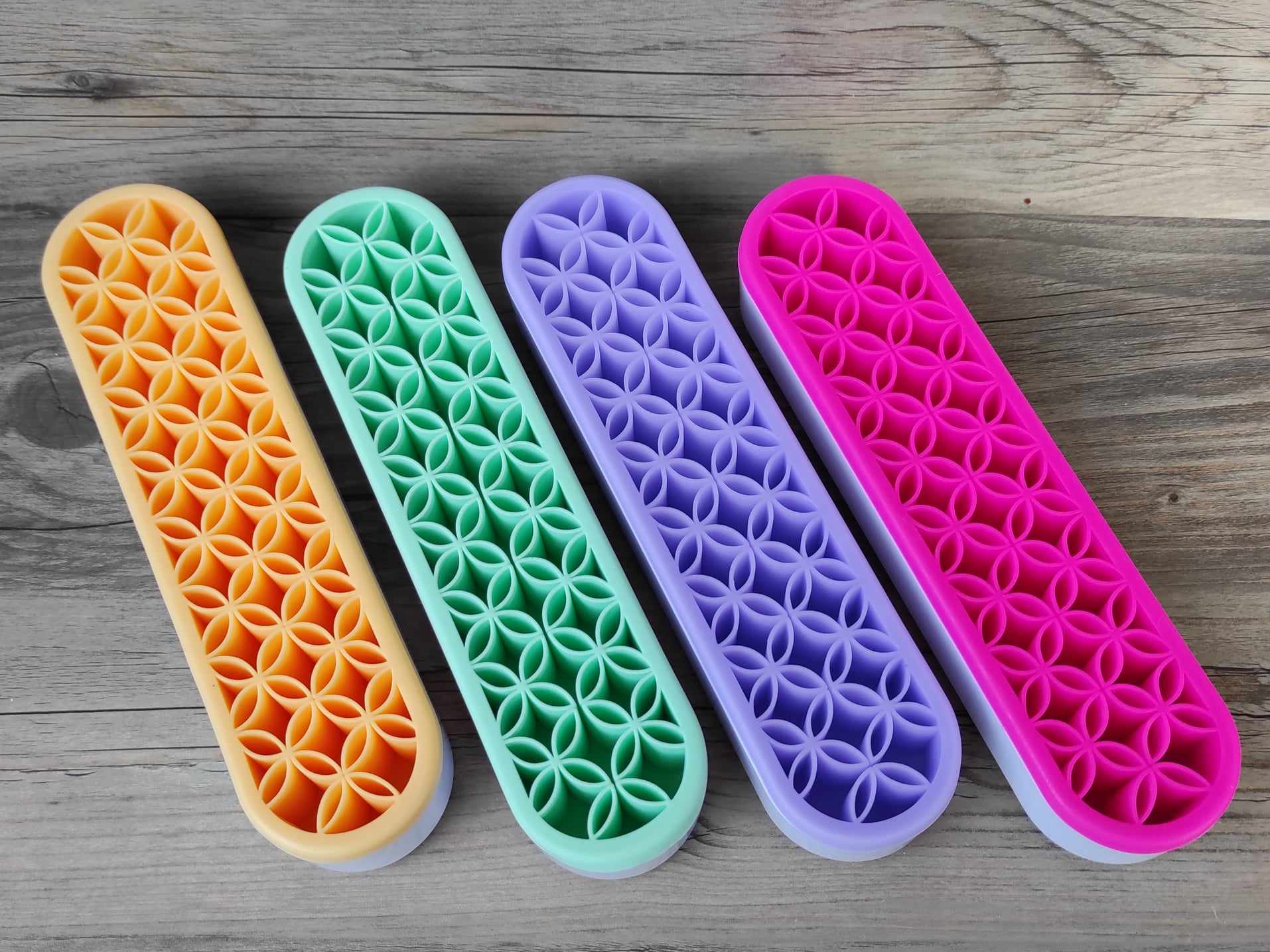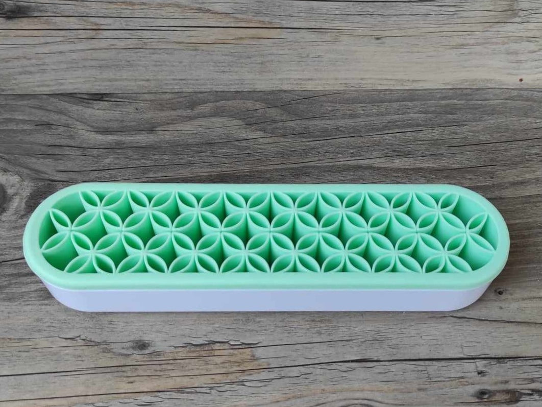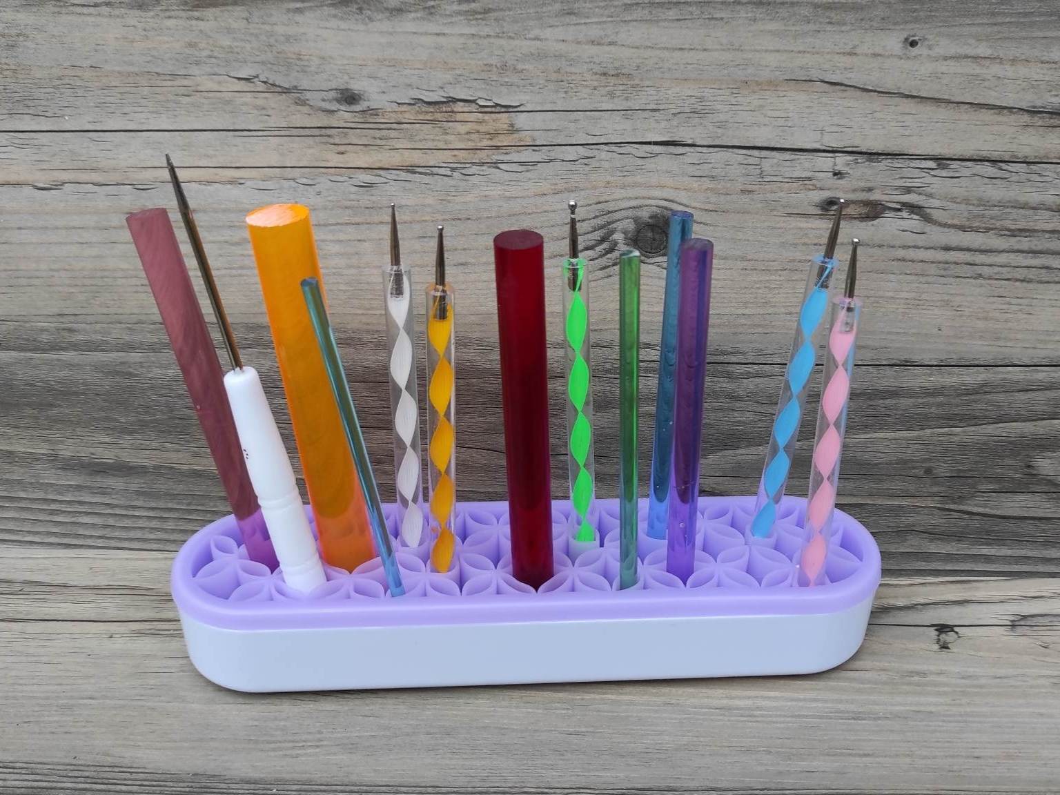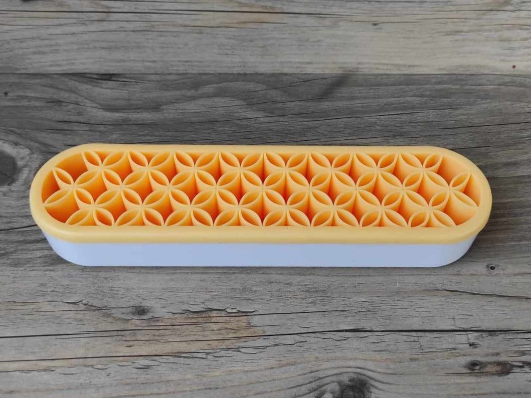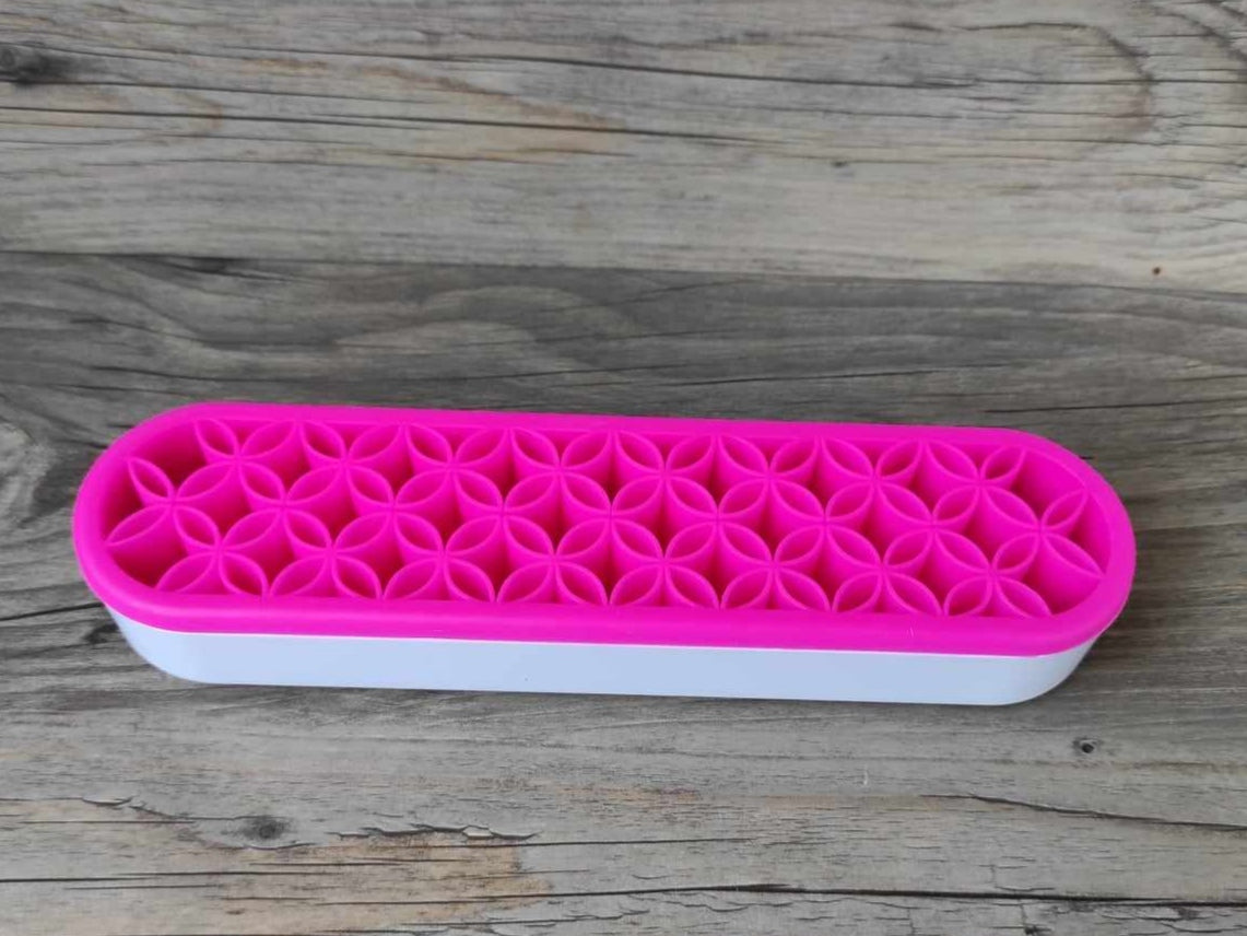 Deine Tools, Stifte, Pinsel, Swooshes Tools usw. sind perfekt, übersichtlich aufgeräumt und sofort griffbereit. Die Silikoneinlage ist flexibel und bietet Platz für unterschiedliche Toolstärken. Nichts rollt mehr vom Tisch, fällt runter und geht kaputt.